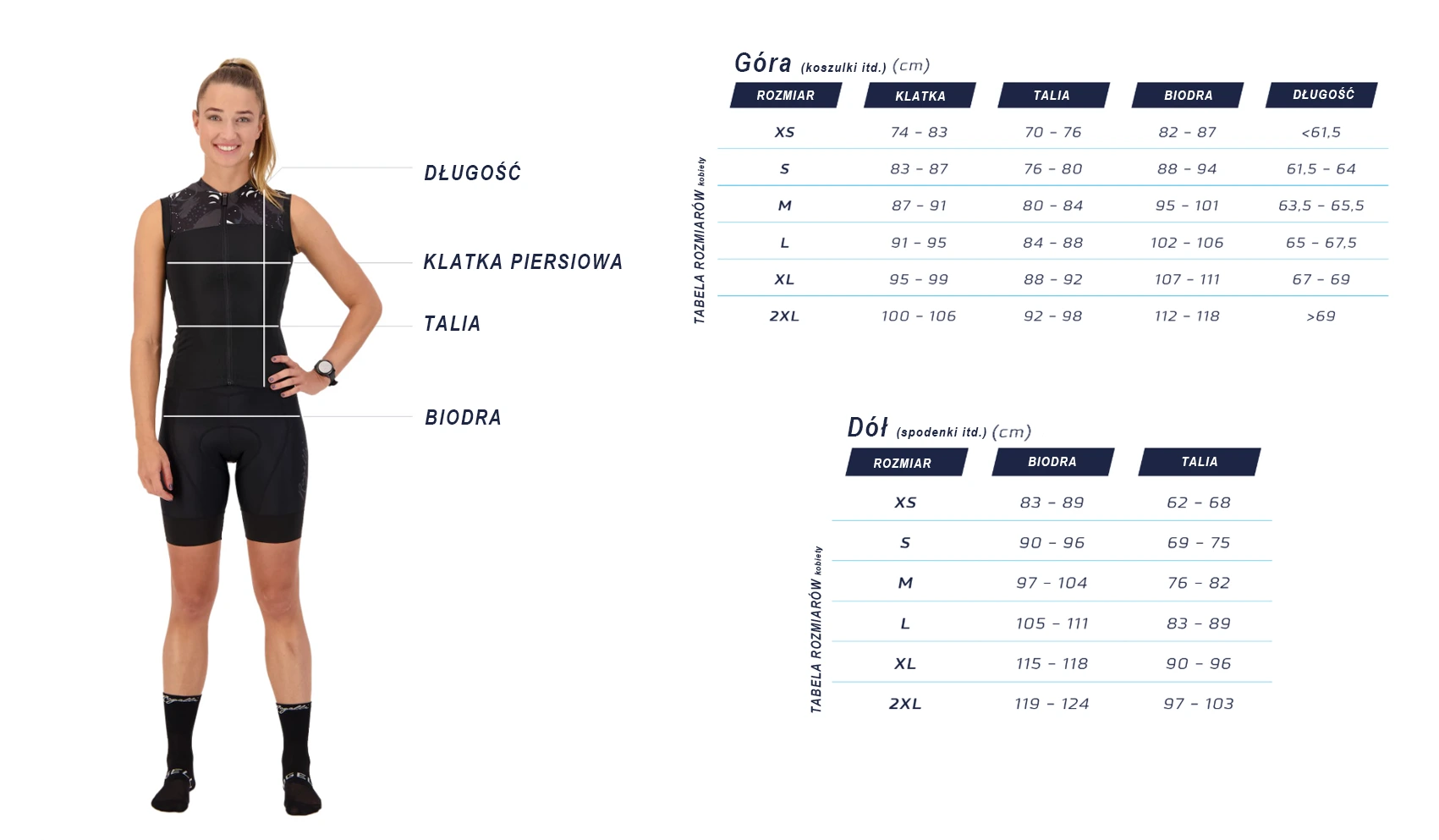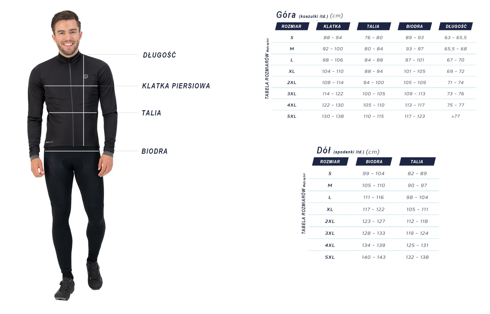 • Jesteś na granicy rozmiarów? W przypadku odzieży na rower szosowy i do biegania, zawsze wybieraj rozmiar większy. W przypadku odzieży MTB sugerujemy wybór rozmiaru mniejszego.