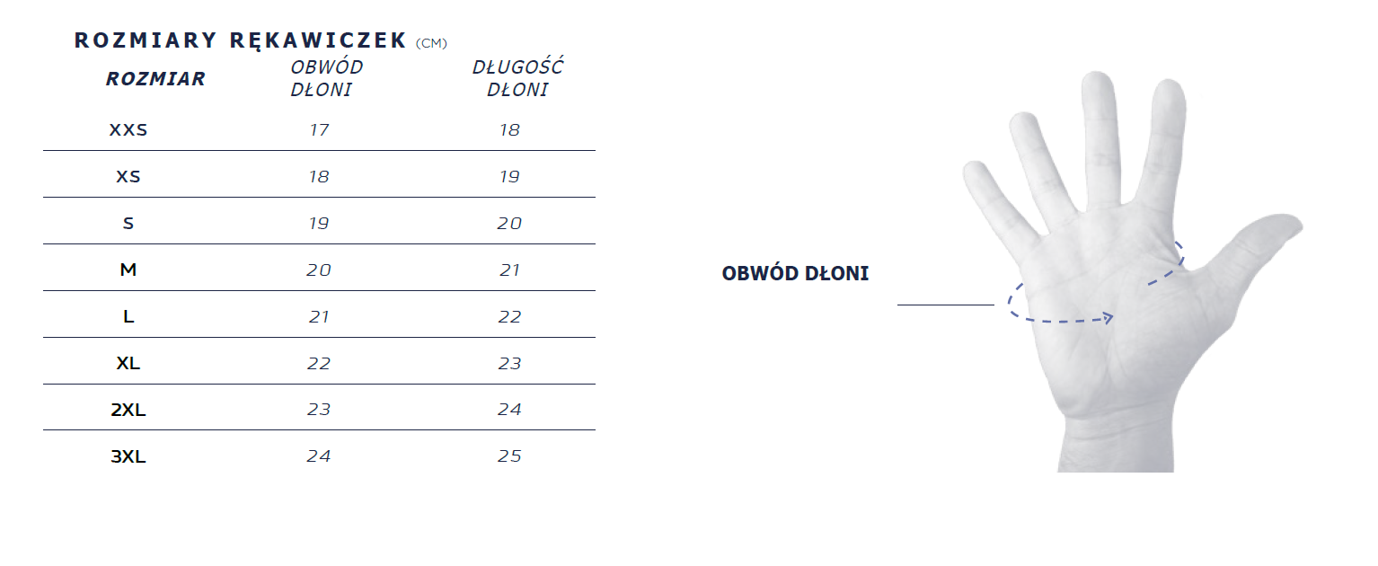 - WSKAZÓWKA Zmierz obie ręce, aby określić, który rozmiar będzie dla nich najlepszy. Jeśli wymiary się różnią, uśrednij wynik.