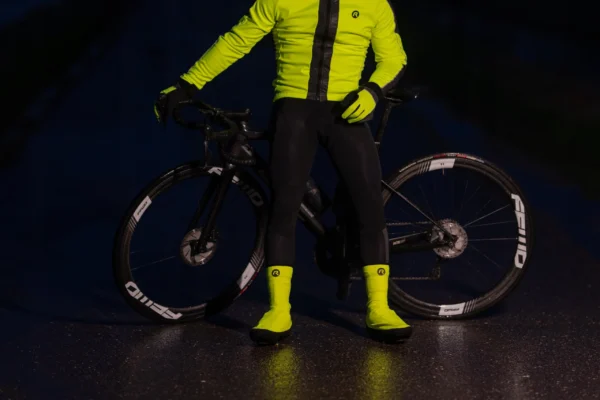 Połącz ochraniacze na buty HI VIS z kurtką rowerową HI VIS, aby uzyskać doskonałą widoczność w ciemności.
