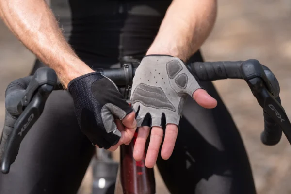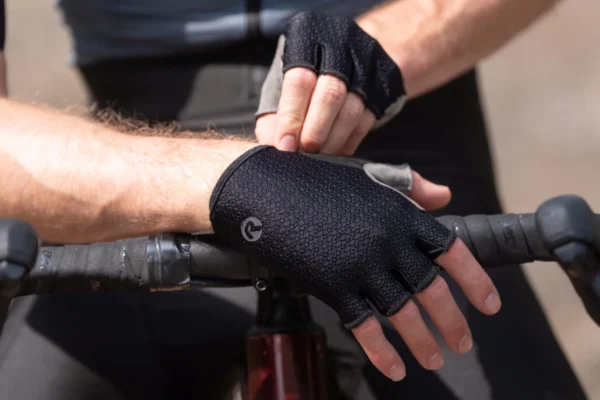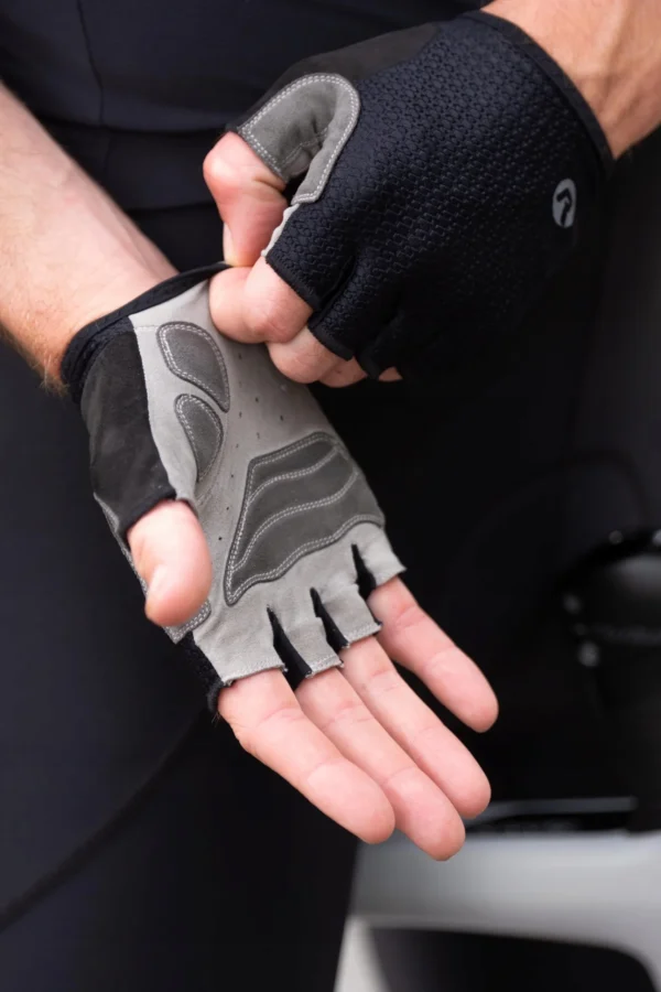 Dłoń wykonana jest z zamszu AX® Eco Suede, ekologicznego i zrównoważonego materiału, który zapewnia pewny chwyt. Piankowe i żelowe podkładki na dłoniach zapewniają dodatkową amortyzację, pochłaniając wstrząsy i wibracje podczas jazdy po drodze. Otwory wentylacyjne na dłoniach zapewniają chłód i suchość dłoni.