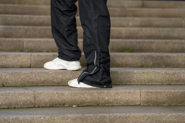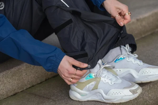 Nogawki w kształcie litery V z zapięciem na rzep zapewniają dodatkową wygodę i funkcjonalność. Dzięki temu można łatwo naciągnąć spodnie na buty, a one dobrze dopasowują się, zapewniając optymalną ochronę przed wilgocią.