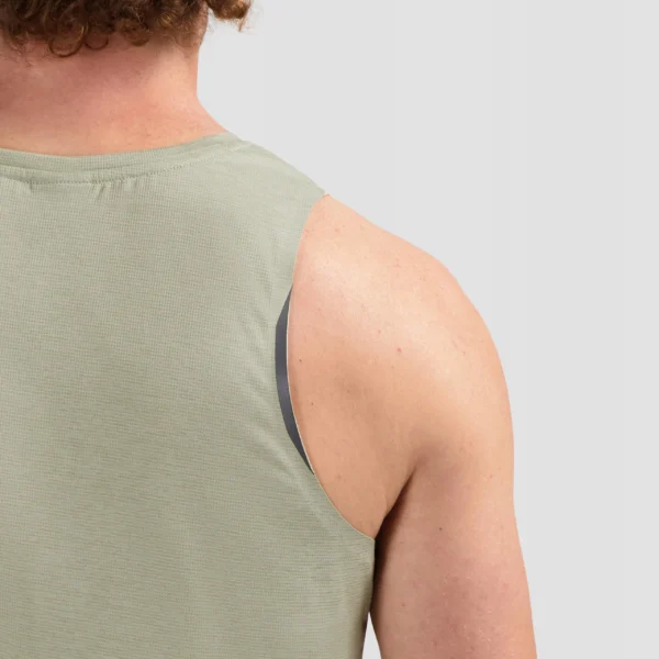 Koszulka bez rękawów (Green-R) na długie dystanse w upale. Wykonana z lekkiego Eco AirSquare Light o waflowej strukturze. Zgrzewane krawędzie minimalizują tarcie, zapewniając uczucie „drugiej skóry”. Posiada elementy odblaskowe dla bezpieczeństwa.