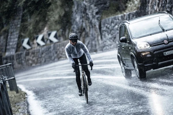 Kurtka przeciwdeszczowa Emergency dla kobiet to rozwiązanie podczas niespodziewanego deszczu. Jest bardzo lekka i można ją złożyć do bardzo małego opakowania. Dzięki temu kurtkę przeciwdeszczową z łatwością zabierzesz ze sobą na rower i nie spotkasz się z niespodziankami. Emergency chroni przed deszczem i jest wykonana z wodoodpornego i wiatroszczelnego materiału Aqualite 5000. Wydłużony tył kurtki chroni przed zachlapaniem wodą. Dzięki odblaskowym detalom pozostajesz widoczny dla innych użytkowników drogi w ciemną i deszczową pogodę.