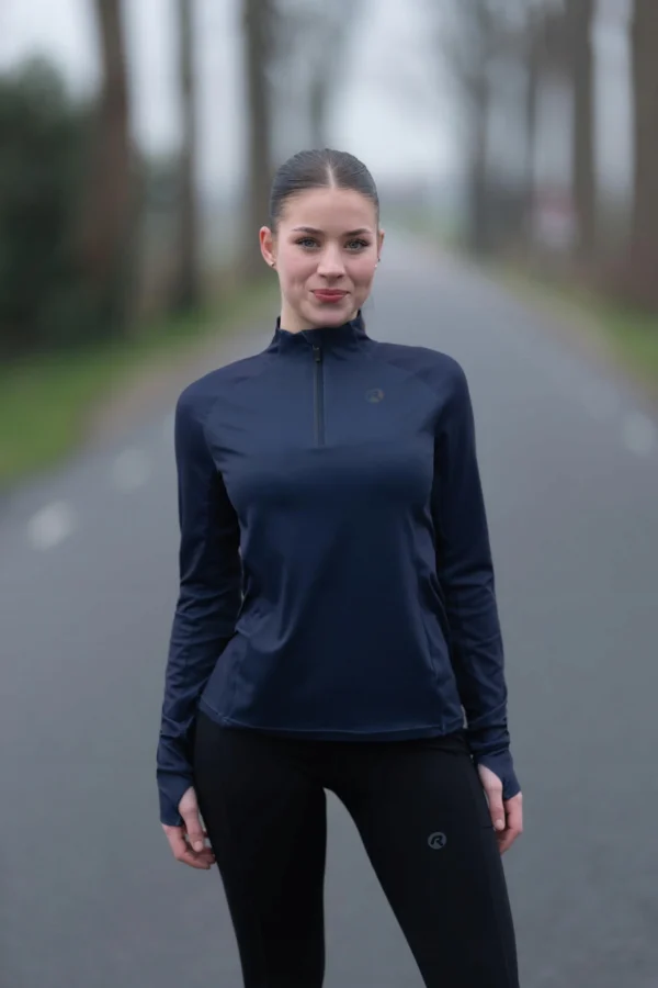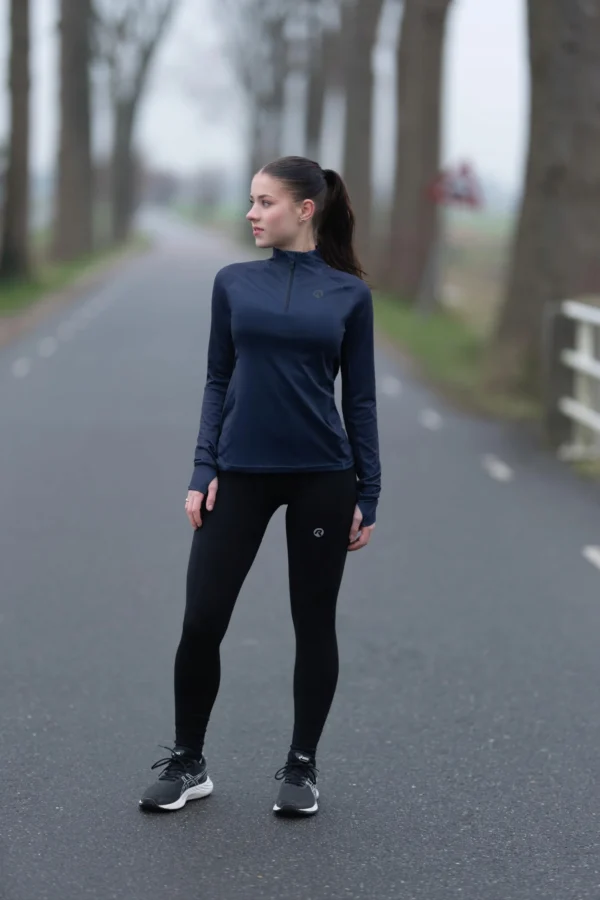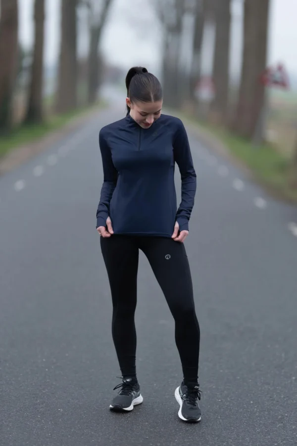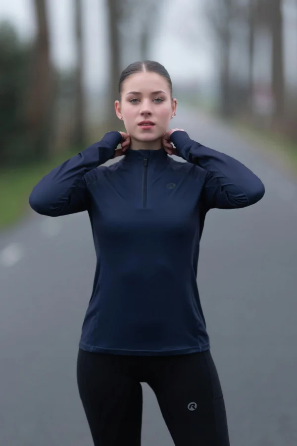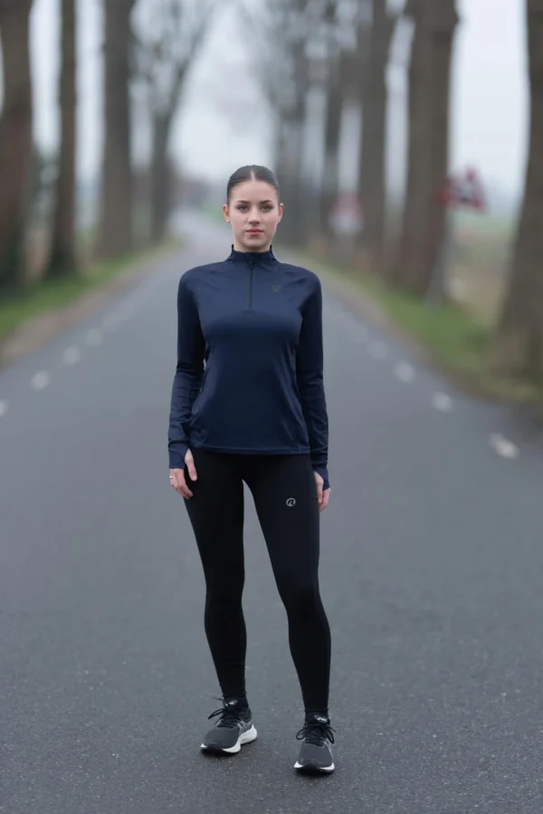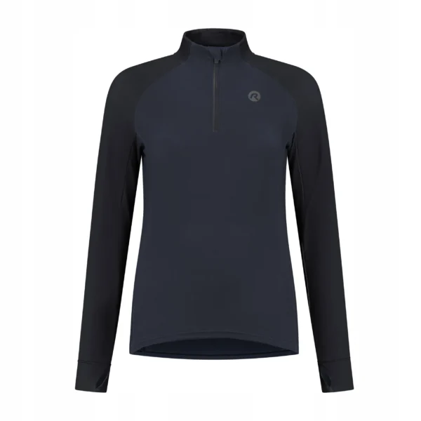 Bluza do biegania na chłodniejsze dni, wykonana z ekologicznej tkaniny Eco Dynatherm Flex 220 (szybkoschnąca i oddychająca). Posiada krótki zamek przy kołnierzu dla wentylacji, otwory na kciuki na końcach rękawów dla dodatkowego ciepła i dopasowania. Odblaskowe detale zapewniają widoczność.