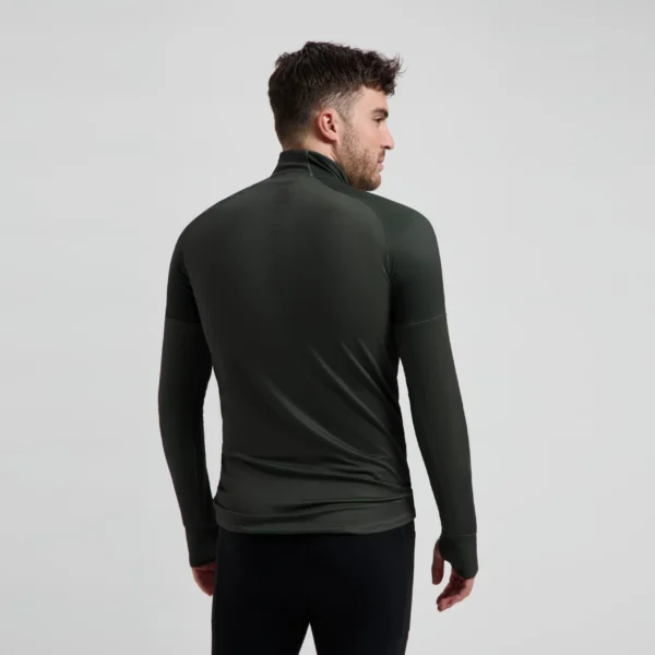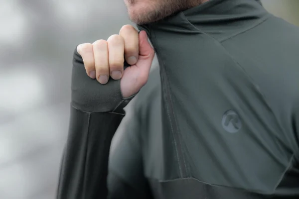 Krótki zamek błyskawiczny na wysokim kołnierzu zapewnia dodatkową wentylację w razie potrzeby. Otwory na kciuki na końcu rękawa zapewniają optymalne dopasowanie i zatrzymywanie ciepła.