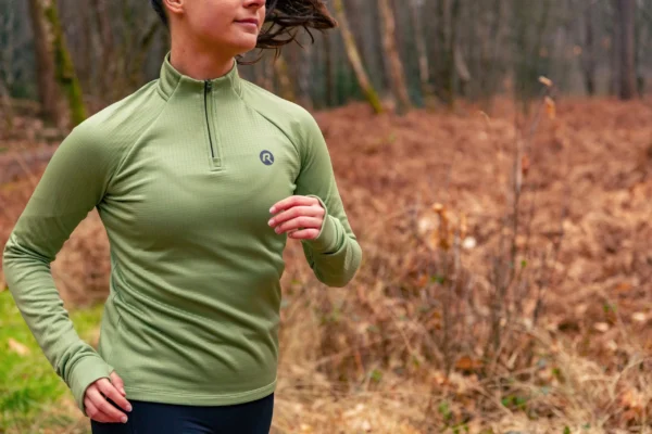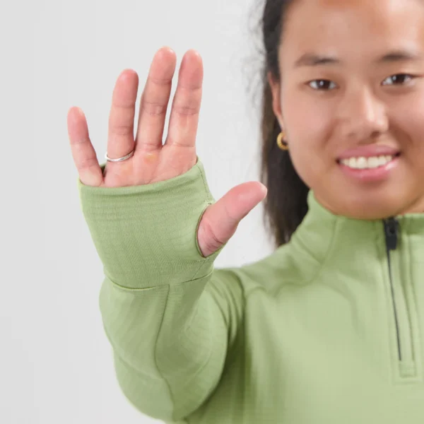Bluza z długim rękawem (Green-R) na chłodniejsze dni, idealna jako warstwa środkowa. Wykonana z elastycznego materiału Eco DynaGrid Flex 230 z delikatnie szczotkowanym wnętrzem, zapewniającym ciepło bez przegrzewania. Posiada krótki zamek do wentylacji i otwory na palce.