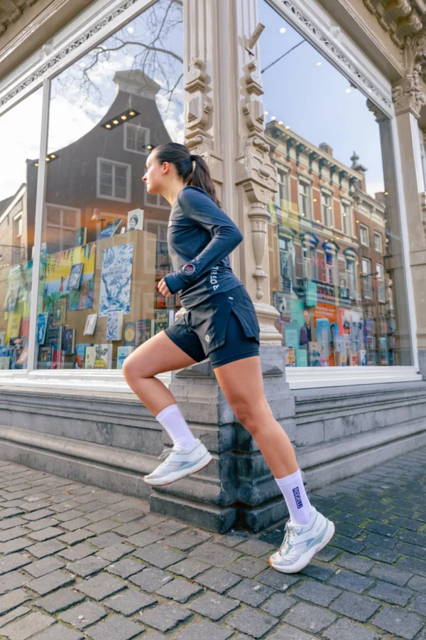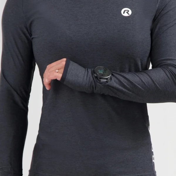 Praktyczność podkreślają otwory na palce i okienka na zegarki na obu nadgarstkach, dzięki którym masz kontrolę nad swoim tempem i tętnem. Odblaskowe detale zwiększają Twoje bezpieczeństwo.