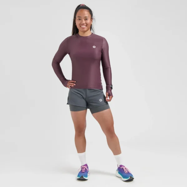 Rogelli ESSENTIAL – damska koszulka do biegania z długim rękawem bordowa
