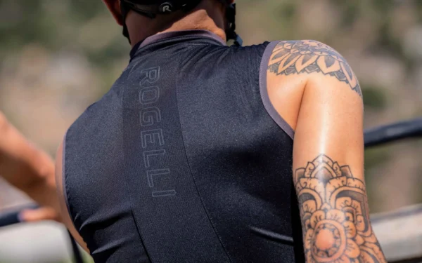 Siateczkowy materiał został również zastosowany z tyłu koszulki, dzięki czemu nagromadzone ciepło odprowadzane jest dodatkowo przez plecy. Dzięki połączeniu siatki oraz szybkoschnącej i ochronnej tkaniny Dynacool, bezrękawnik Rogelli Essentail No Sleeve stwarza idealne warunki do jazdy w najgorętsze dni w roku.