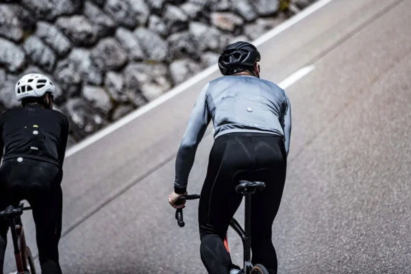 Legginsy (spodnie bez szelek) Race Fit na zimę (5-15°C). Wykonane z ocieplonego Dynatherm Flex 240. Posiadają żelową wkładkę Comfort Gel na średnie/długie dystanse (do 4h) oraz dwuwarstwowy materiał na kolanach dla lepszej izolacji.