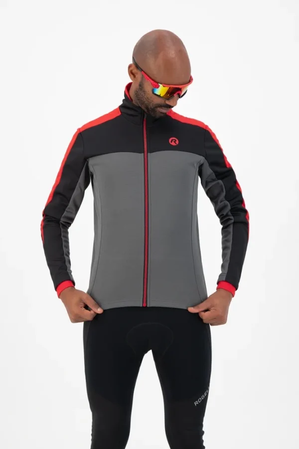 Rogelli FREEZE – męska zimowa kurtka rowerowa czarno-czerwona