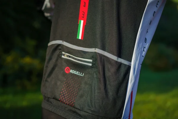 Efektowny nadruk wraz z kolorowymi panelami składają się na atrakcyjny design modelu. Z tyłu umieszczono trójdzielną kieszeń z dodatkową małą kieszonką na zamek. Dużą kieszeń oraz małe kieszonki wyposażono w element odblaskowy, podnoszący bezpieczeństwo rowerzysty na drodze. Rękawy koszulki kończą się szerokim elastycznym ściągaczem. Dynamiczny, sportowy design oraz materiały najwyższej jakości pozwalają na uniwersalne zastosowanie modelu.
