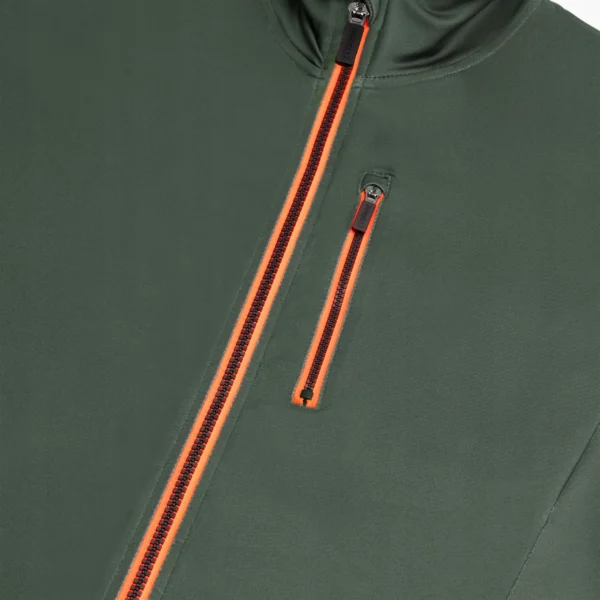 Cienka bluza JAKE na cały rok, bez ocieplenia. Wykonana z elastycznej, szybkoschnącej tkaniny Dynaflex. Posiada długi zamek z blokadą oraz kieszeń na zamek na piersi. Rękawy wykończone są otworami na kciuki. Model charakteryzuje się odblaskowymi detalami.