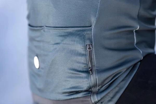 Praktyczne kieszenie: Kurtka wyposażona jest w trzy bezszwowe kieszenie tylne oraz dodatkową wodoodporną kieszeń tylną z zamkiem i gumowym sznurkiem. Dzięki nim możesz bezpiecznie przechowywać wszystkie niezbędne rzeczy podczas jazdy.