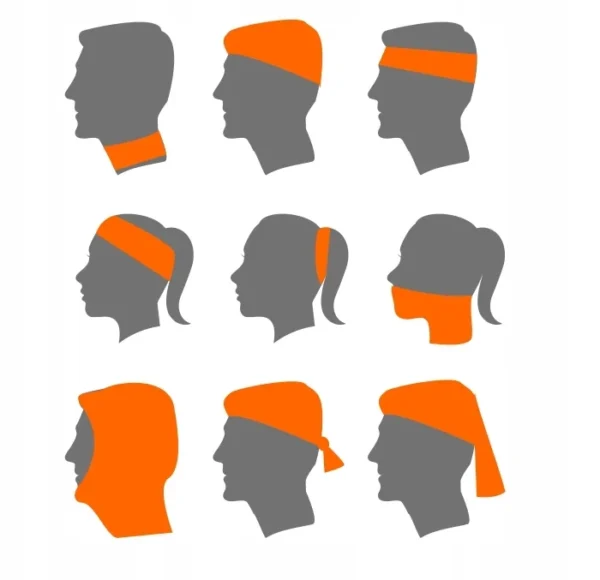 - sposoby noszenia: opaska na głowę czy nadgarstek, czapka, chustka pirata, związanie kucyka, kominiarka, ochrona twarzy czy ust