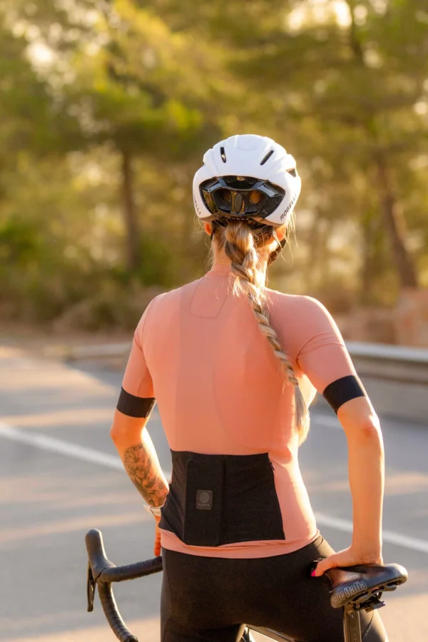 Koszulka rowerowa Signature Pro Fit (15–35°C), idealna na długie przejażdżki. Wyprodukowana we Włoszech, z cienkiej i oddychającej tkaniny Carvico® Revolutional Mild. Gwarantuje aerodynamiczne dopasowanie. Posiada laserowo wycinane rękawy, ukryty zamek z autoblokadą, silikonowy pas oraz cztery kieszenie na plecach.
