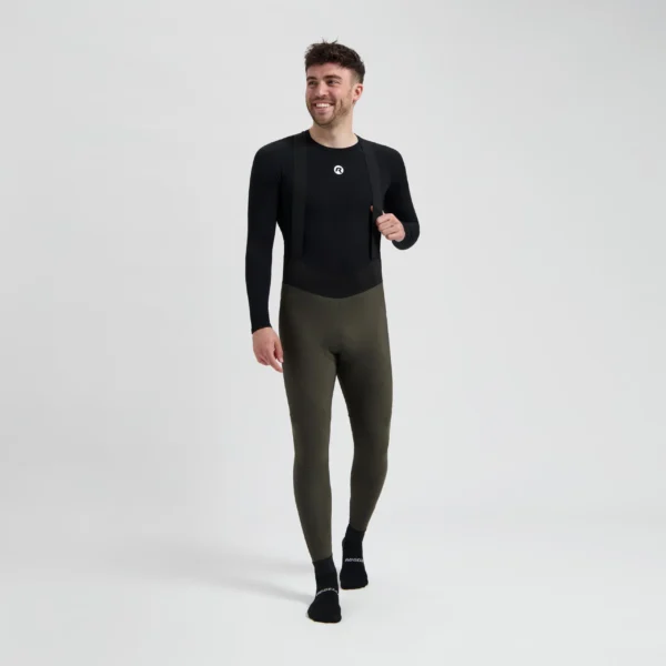 Rogelli SIGNATURE – męskie zimowe spodnie rowerowe z szelkami khaki