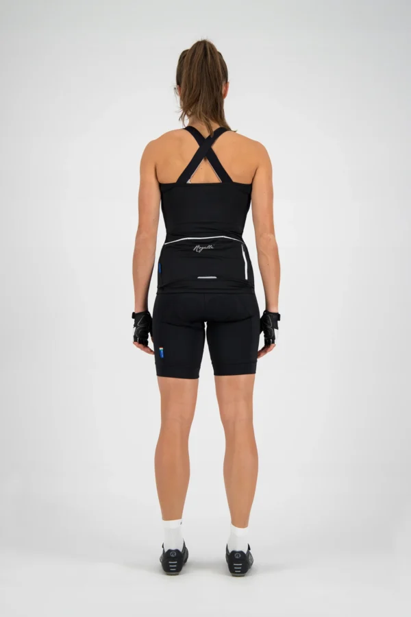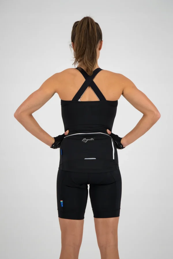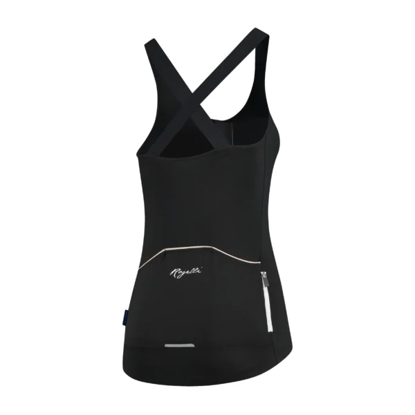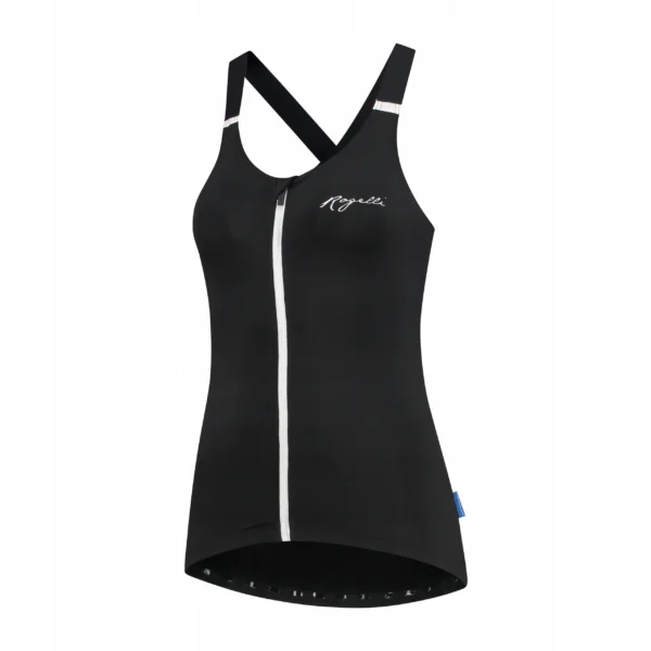 Damski top rowerowy Race Fit bez rękawów, idealny na gorące lato (25–40℃) lub jazdę indoor. Wykonany z lekkiego i bardzo elastycznego materiału Dynaflex. Posiada skrzyżowane ramiączka na plecach, długi zamek z autoblokadą, szeroki antypoślizgowy pasek w pasie oraz trzykomorową kieszeń z dodatkową kieszonką na zamek.